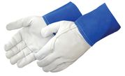 Premium grain goatskin tig welder, 4" blue split leather cuff, gunn pattern, Kevlar� thread sewn